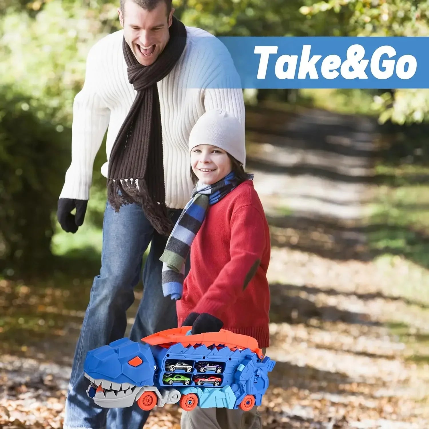 【Safe&Simple!】 No worry, all our dinosaur car carrier truck and little toy cars are completely safe for your children! High quality BPA-free materials ensure all parts non-toxic, non-smelling and no burrs, cracks and easy to play. With the portable designed back handle, You could easily take it with you.